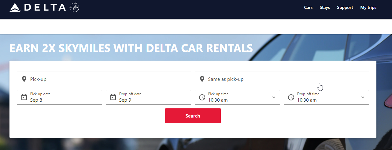 쓰여진 대로 Delta 사이트를 통해서 렌터카를 예약하면 마일리지 2배 그리고 추가 마일리지 적립도 제공을 합니다.